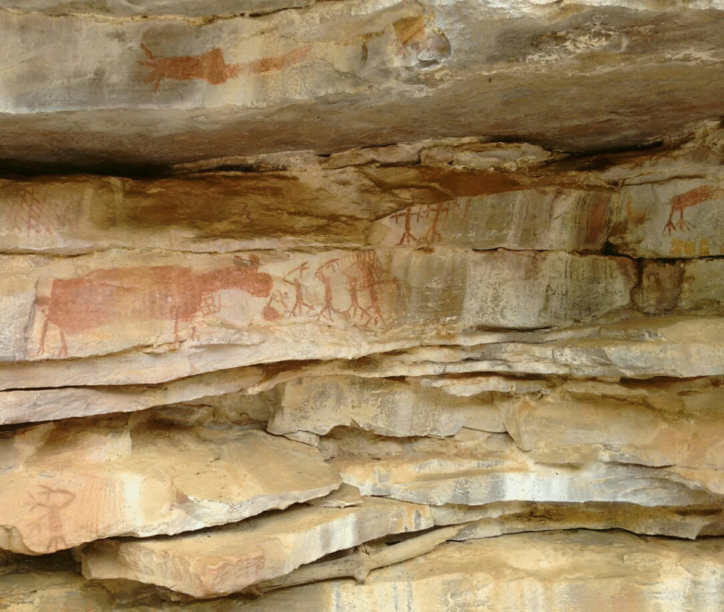 As pinturas rupestres são representadas em formas geométricas, de astros, e de rituais ligados à caça.A sua tintura é vermelha, e pode ser produzida com sangue ,gorduras de animais,frutos, pó de rochas,e outros elementos da natureza.No paredão do sítio Riacho Largo,encontramos variedades dessas pinturas,entre elas está o “Toxodonte”,principal pintura rupestre da região.Tal pintura recebeu esse nome,por que mostra ilustramente o momento em que o animal (o toxodonte) está sendo capturado.